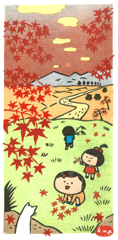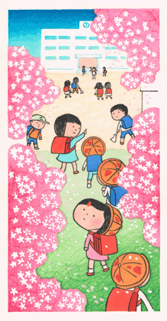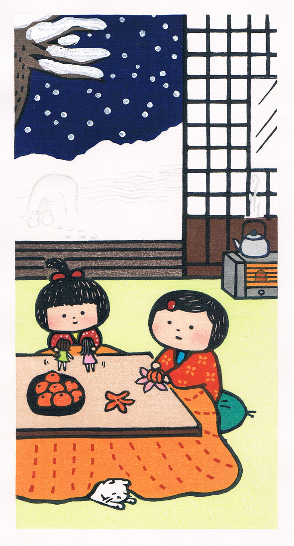1)新入生 桜のグラデの摺り技術! 2)花火 32度摺!で、こまかい絵柄 3)こたつ 昭和の子どもシリーズ第三弾 4)里の秋 昭和の子どもシリーズ第四弾