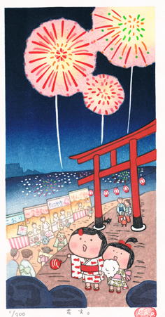 額入り 木版画浮世絵と同じ技法で作られた木版画です。制作工程をみることができます →彫る 摺る